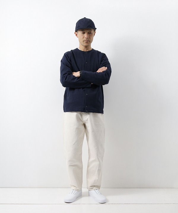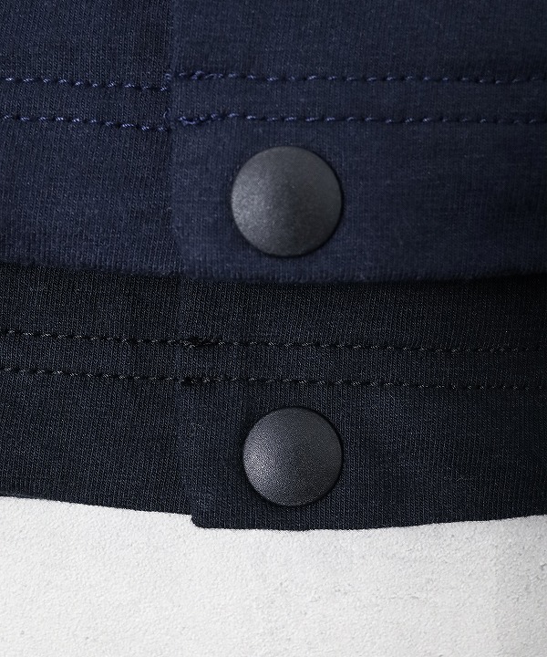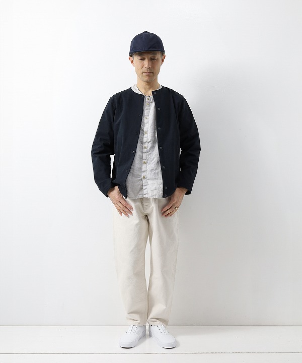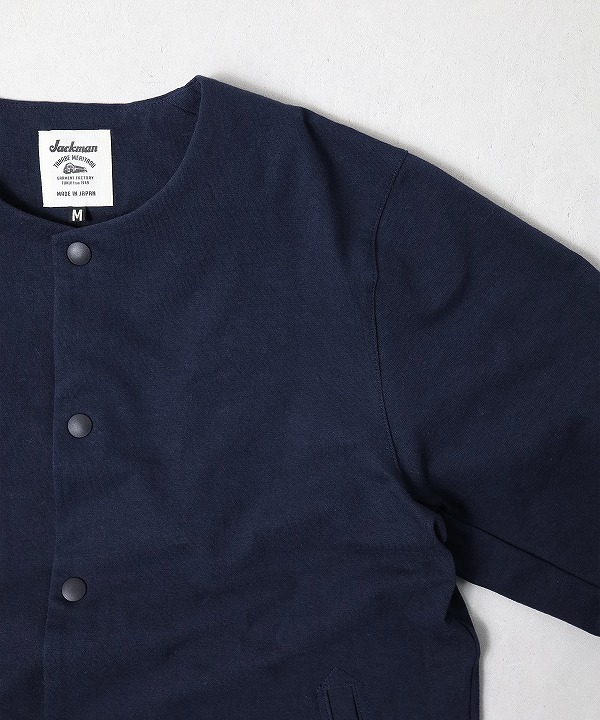 デザインはBaseballユニフォームのような首周りが特徴的な襟のない仕様で首元からインナーの表情も見せることができます。