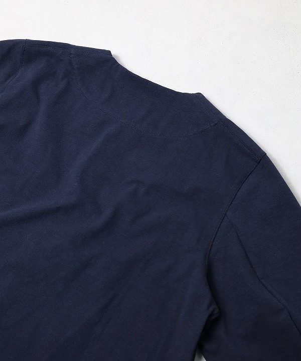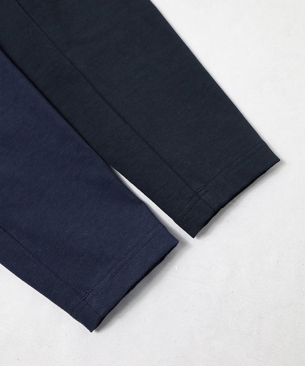 肌触りは綿特有の柔らかさがありますが、高密度で編み立てることでハリ感が出て季節を問わず着用できます。度目をしっかり詰めることで肘の抜けがほとんどなく型崩れも起きにくいのが特長です。