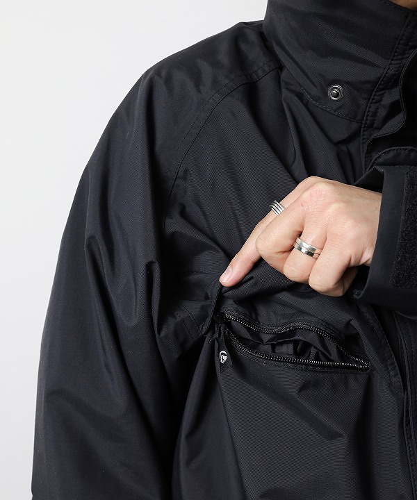 右胸、両腰にはフラップ付きファスナーポケットを搭載し雨が侵入しない構造に。アウトドアにルーツを持つKEELAらしい気配りが見られます。