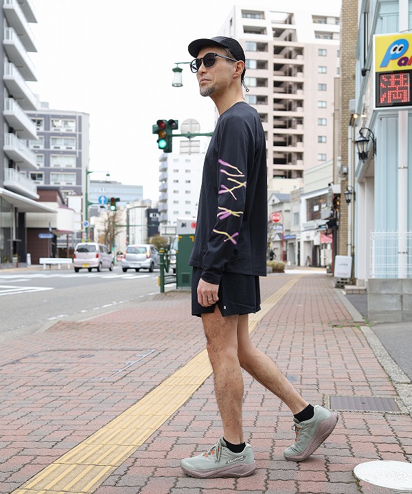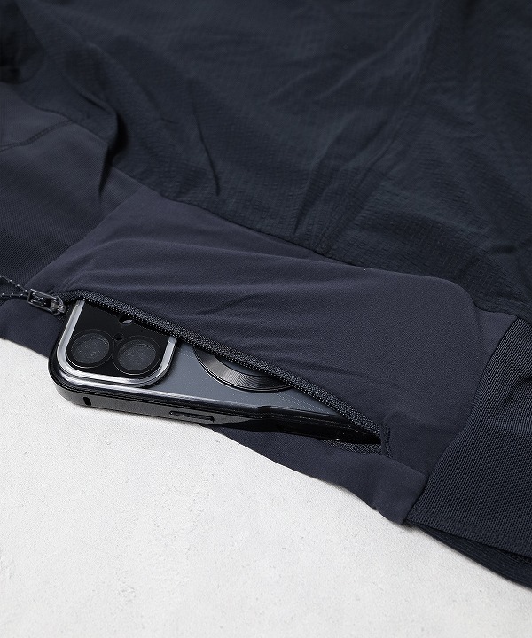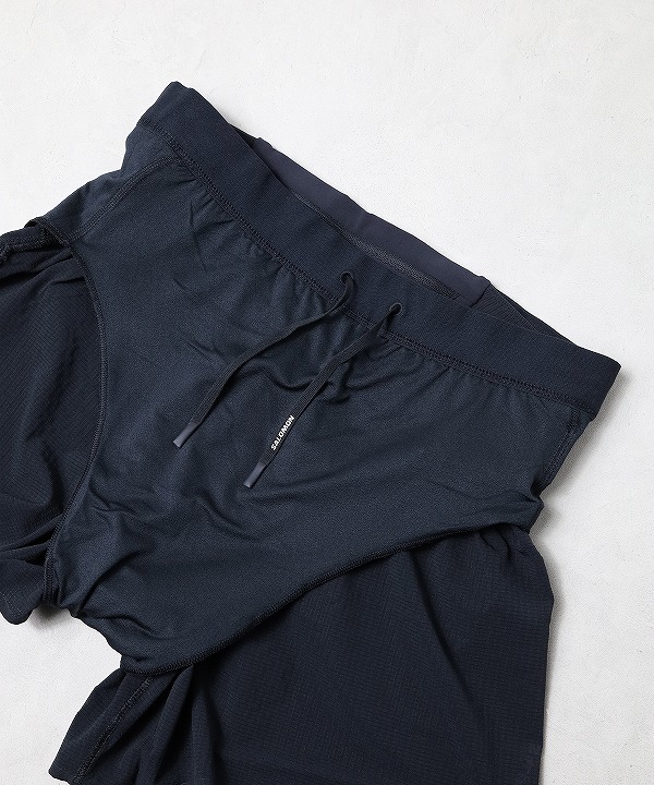 見た目はシアサッカー生地のような速乾性と通気性に優れた GridFlow 素材を使用し、携帯電話用のジップ付き安全ポケットと一体型の跳ねのない収納システムを装備。あらゆるランニングに対応する必須アイテムです。