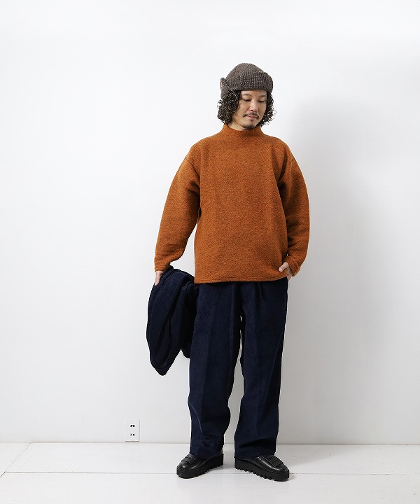 フランスの老舗生地屋VELCORX社製のコーデュロイ生地を使用しています。この珍しいコットン/リネン混紡のコーデュロイ生地は、ドライタッチで独特な色ムラ感が特徴で大人の色気を感じさせます。