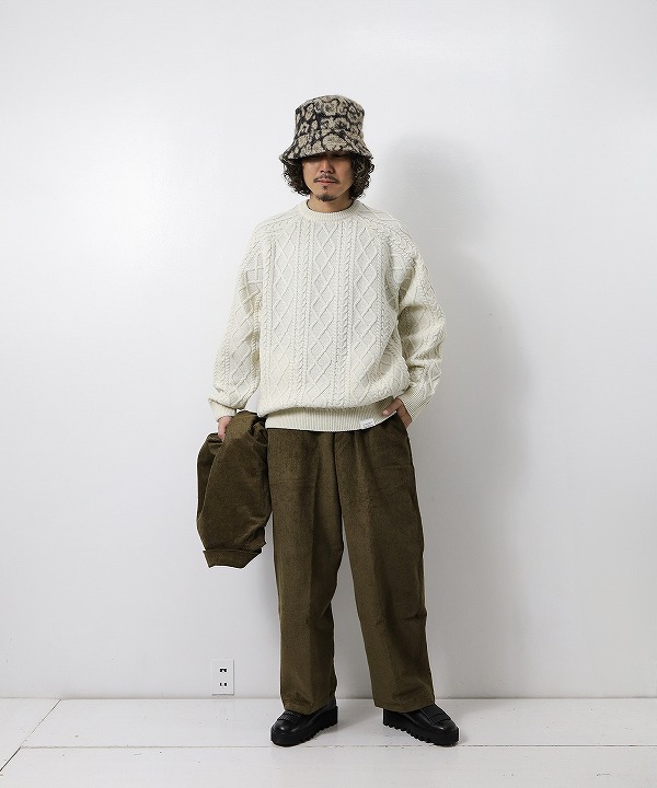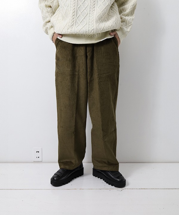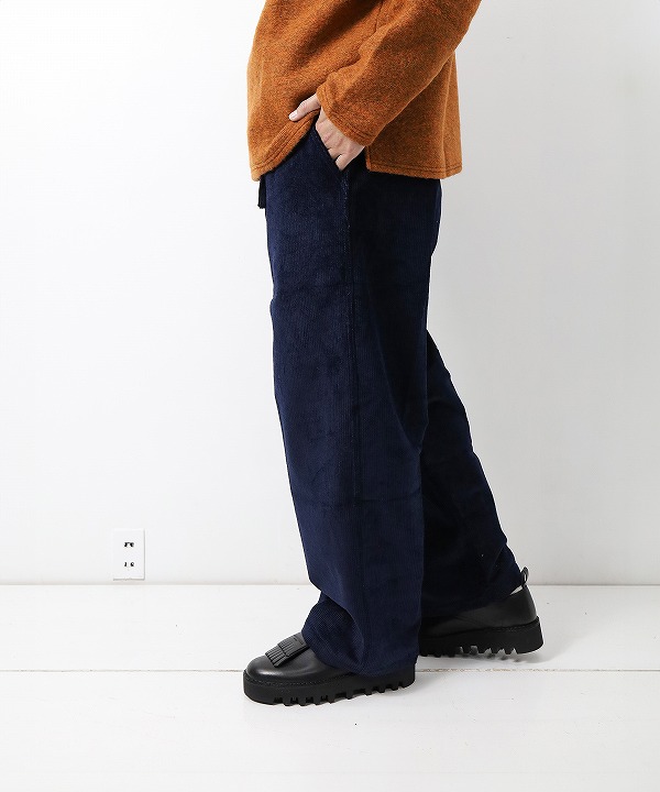 秋冬のボリューム感のあるアウターとも相性抜群の太めシルエット。ウエストは共生地のコードで絞れるの楽チン
