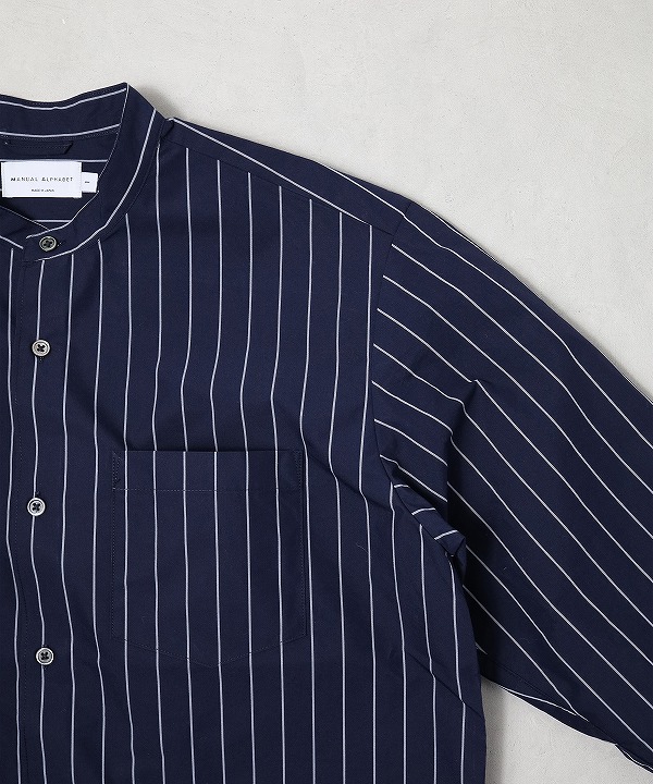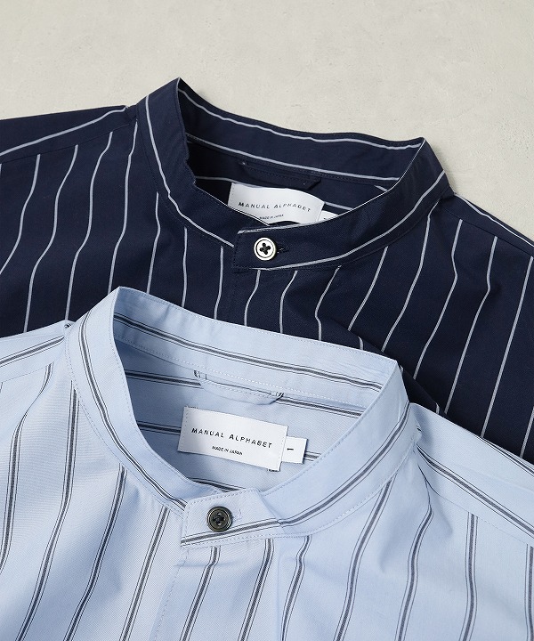 MANUAL ALPHABET / マニュアルアルファベットブランド名である"MANUAL ALPHABET"とは"点字"を意味し、実際に手に取って商品の良さを確かめて欲しいという想いから名づけられています。また”大人が楽しめるシャツを作る”をテーマに、職人工場発信の正統派の縫製は、一人が一枚を作る工程で、カットソー素材まで全て本縫いで仕上げています。クオリティーとスタイルのデザイン性を兼ね備えた、ワンランク上のSHIRTS作りを目指しています。