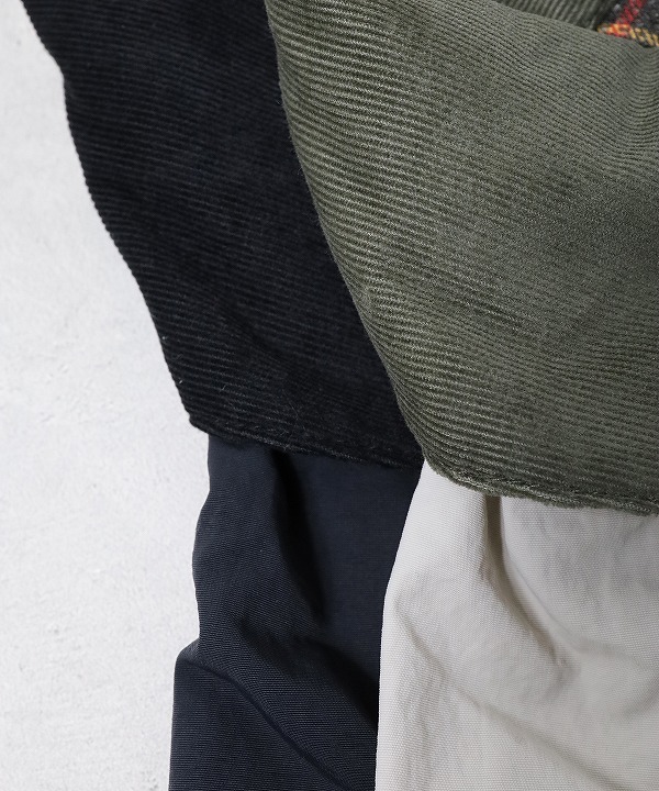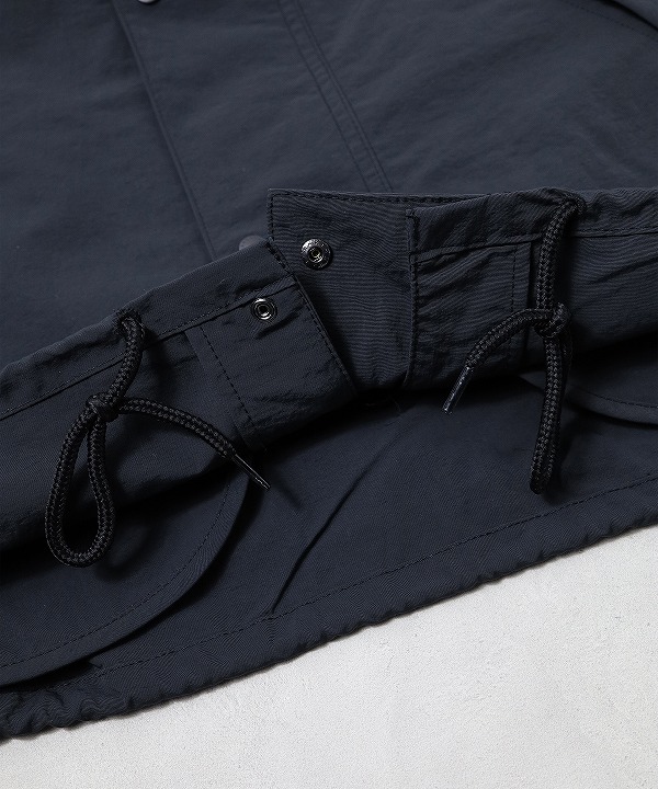 袖口も軽快なゴム入り仕様。襟は細畝のコーデュロイ。首元にはチンストラップ仕様になっており防風性を高めるとともに着かたのアレンジが可能です。