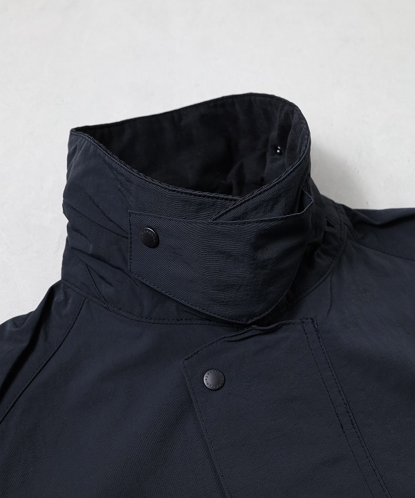 こちらはクラシカルな雰囲気そのままに上質なナイロンを使用。定番のオイルドジャケットと比べ、軽くて扱いやすい春夏仕様になっております。