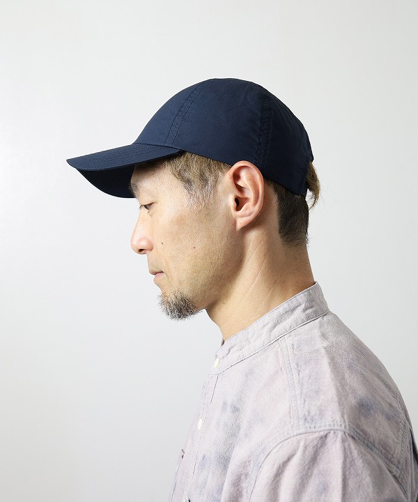 ミリタリーキャップからインスピレーションを得て製作されたアイテムで、やや長めのツバに耳に干渉しないよう浅めのシルエットが特徴。