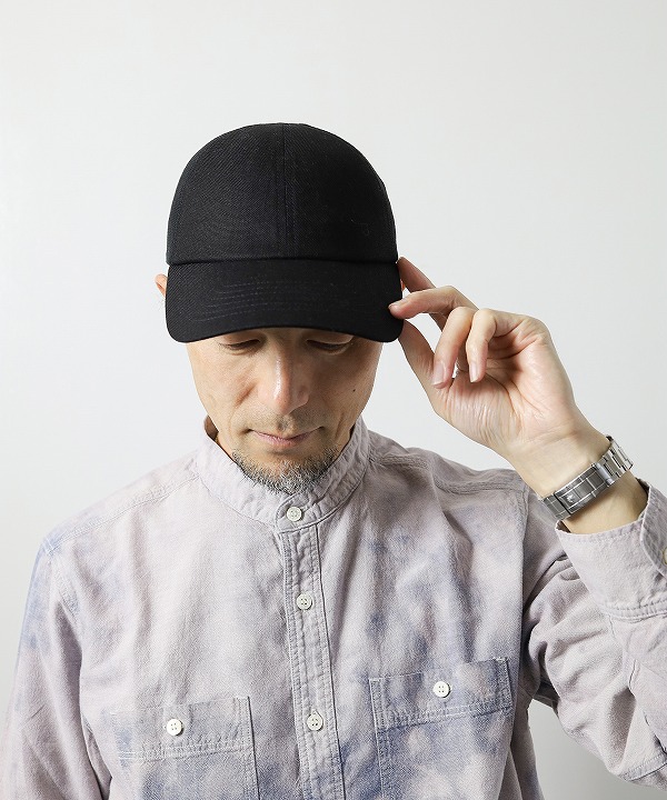 ミリタリーキャップからインスピレーションを得て製作されたアイテムで、やや長めのツバに耳に干渉しないよう浅めのシルエットが特徴。