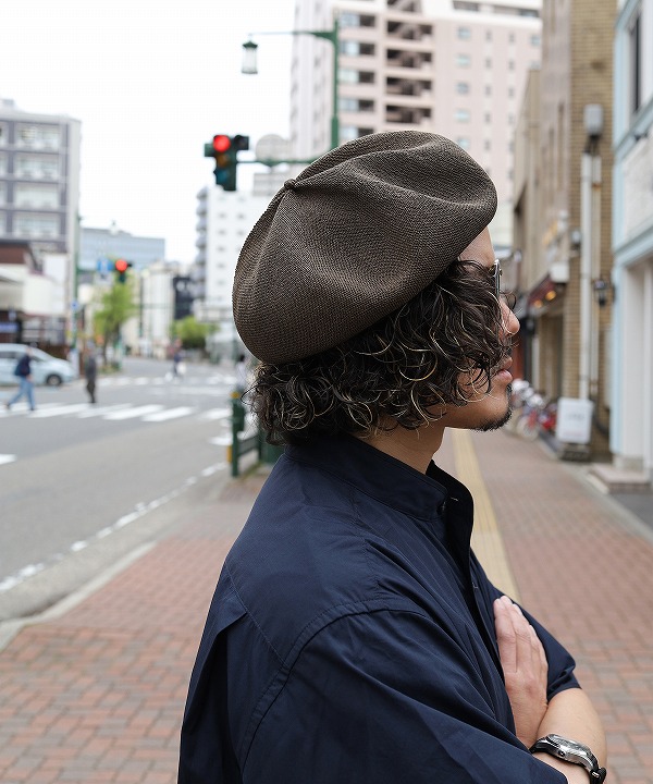 メイン素材にシルクを使用した、軽く涼しく、上品見えするベレー帽。