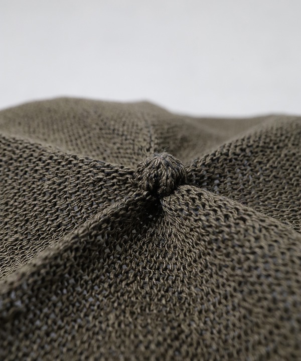 トップのつまみにギャザーデザインを入れたボリューム感のあるビッグシルエットは、キャスケットのようにも取り入れていただけます。