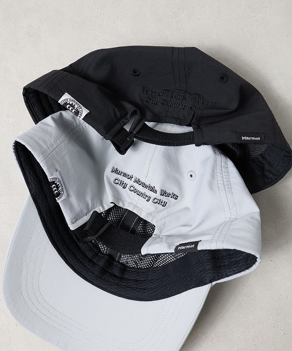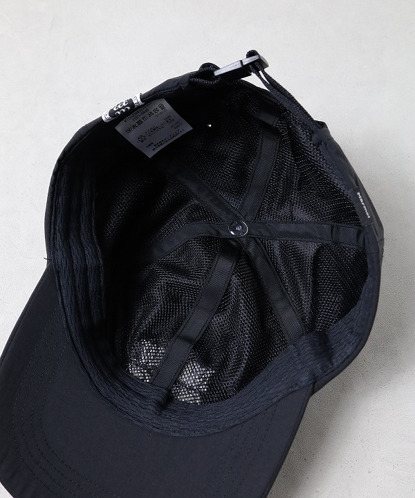 軽量で耐久撥水性柔軟性に優れたPERTEX UNLIMITEDを採用した6パネルキャップ。吸水速乾機能を持った汗帯テープ付きで、バックベルトはサイズ調整可能。背面にそれぞれのブランドピスネームを配置しています。