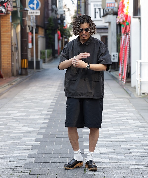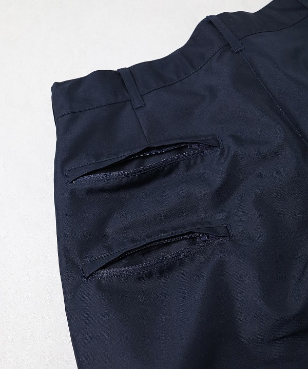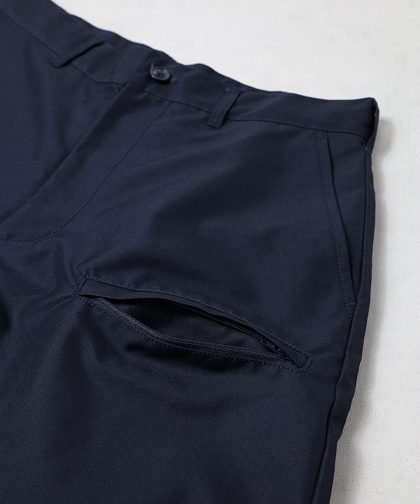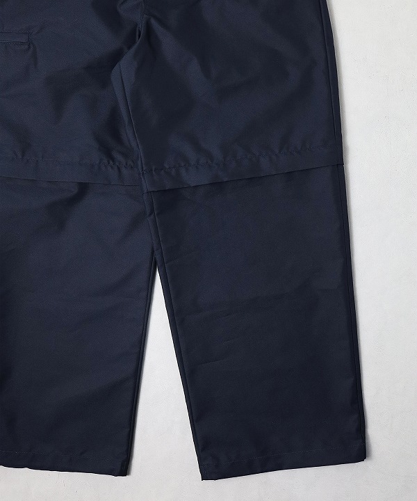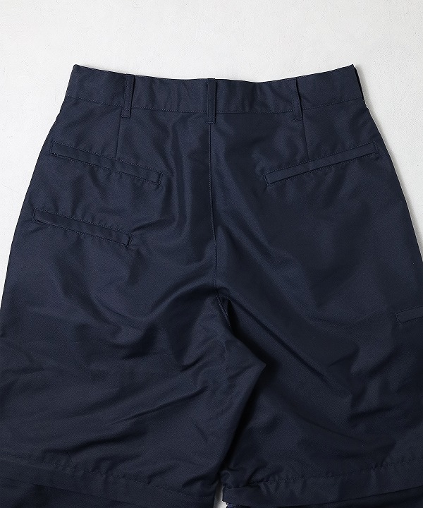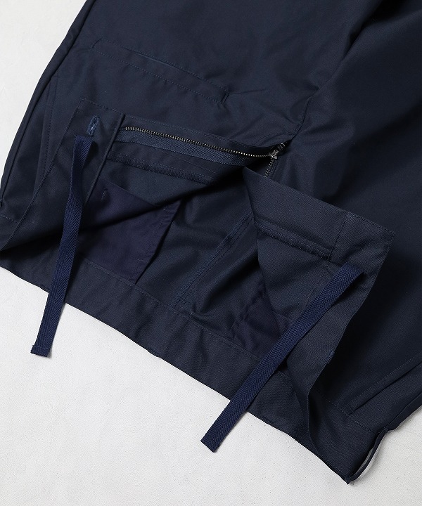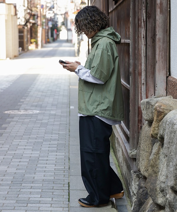 多機能なポケット構成を持つKNOCK ABOUT PANTSを起点に、シルエットや全体のバランスを整え、よりクリーンで落ち着いた印象に仕上げています。