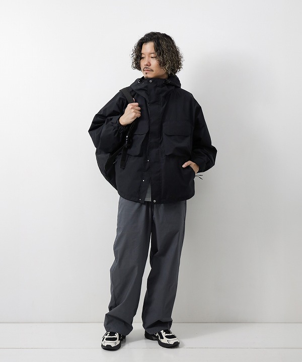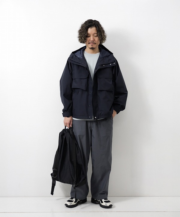 胸元には大きめのフラップ付きポケットを配置し、ワイドな身幅に着丈はややすっきりとしたバランの良いシルエット。