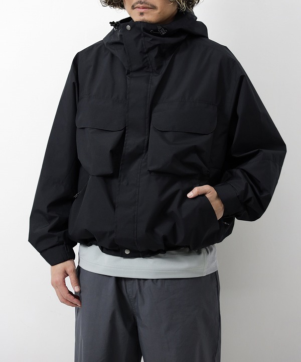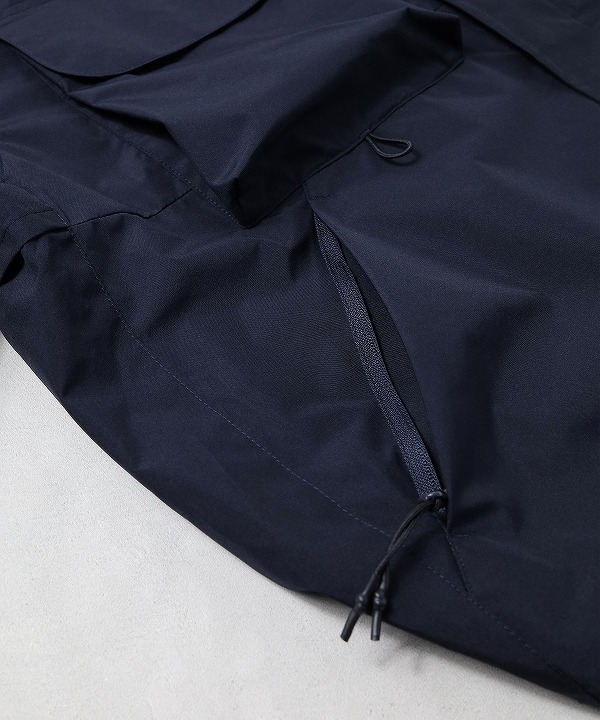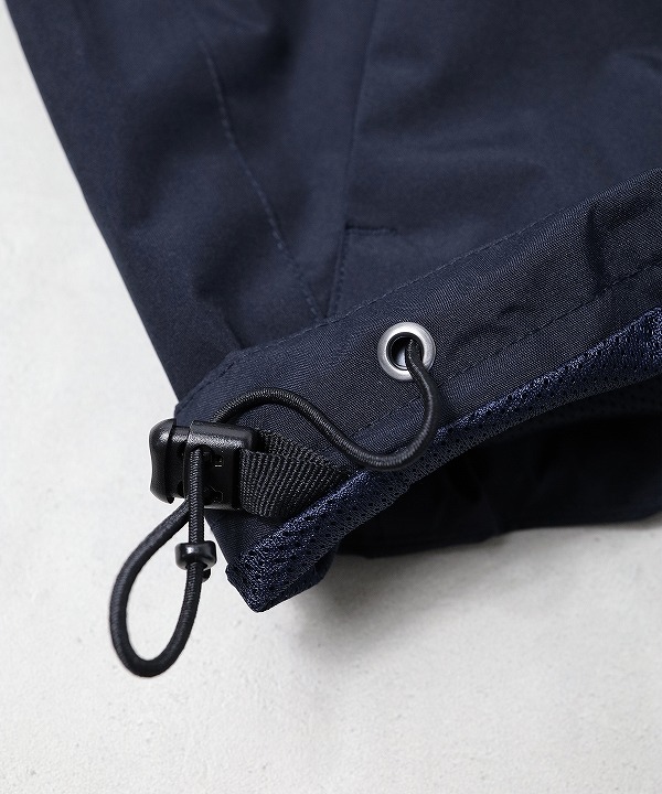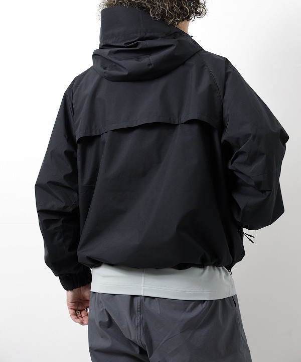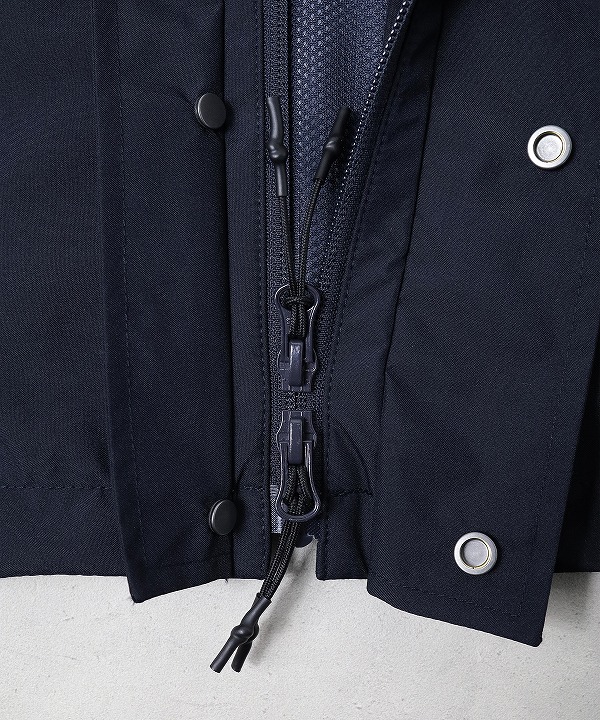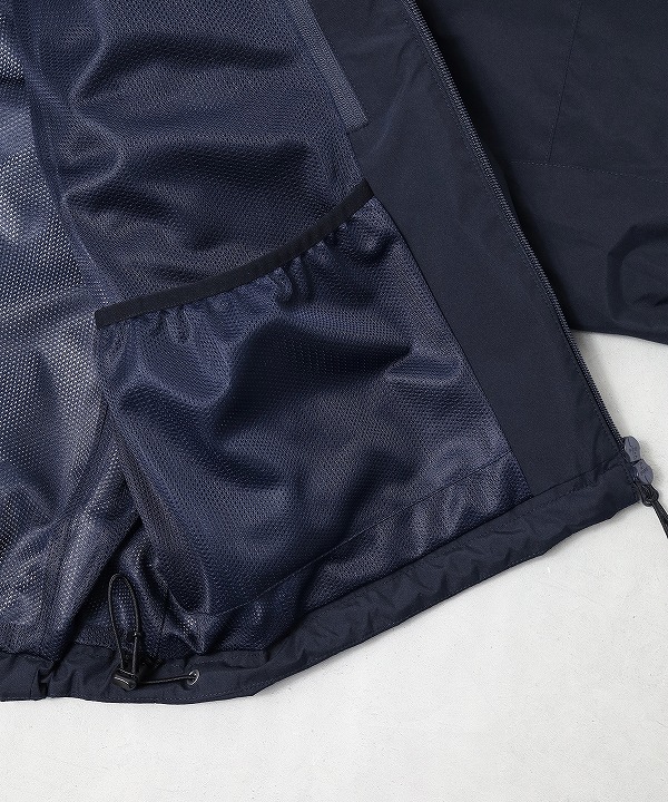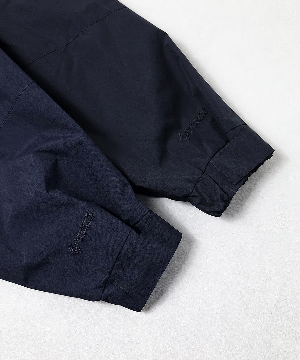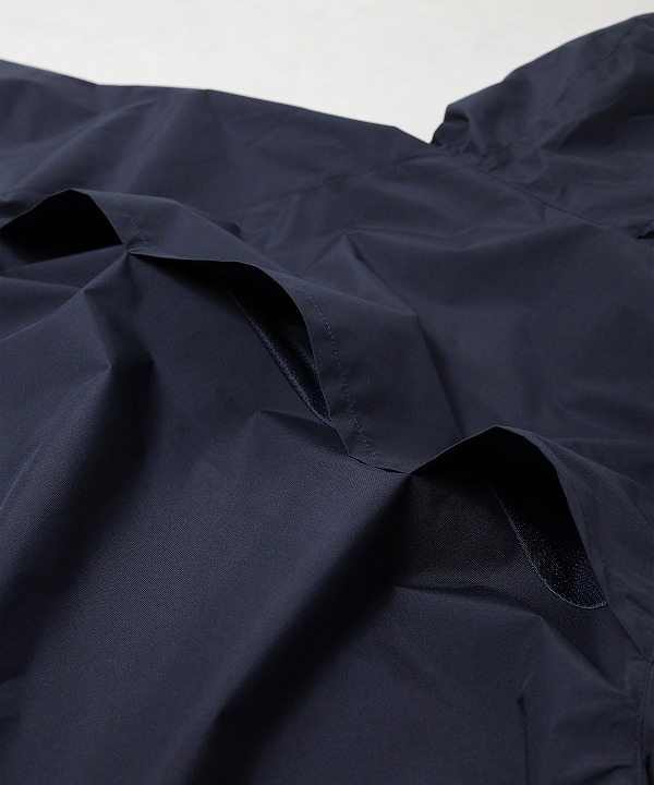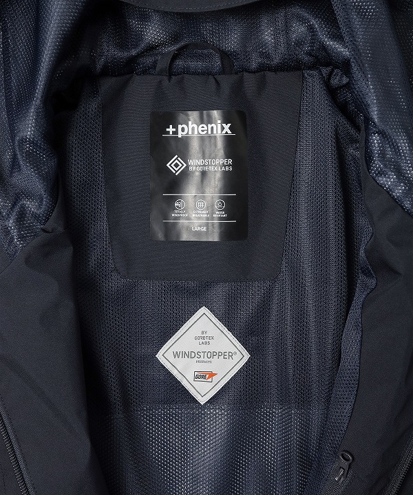 WINDSTOPPER ファブリックを採用し、優れた防風性に加え、多少の雨なら十分に凌げる耐水性も備えた一着。
