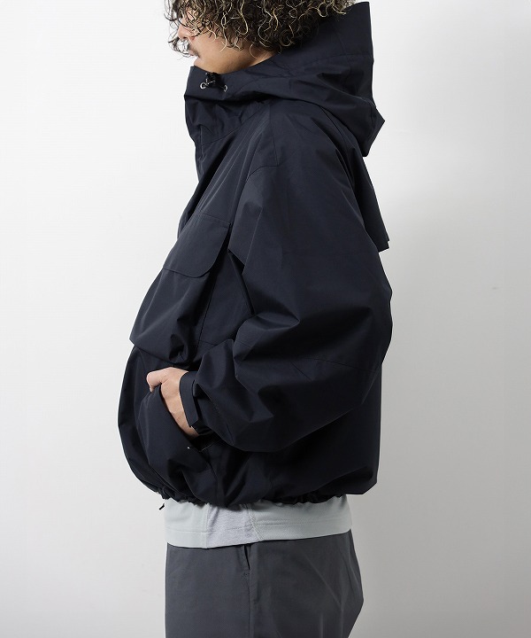 着用画像のように裾のドローコードを絞る事でアレンジも可能です。