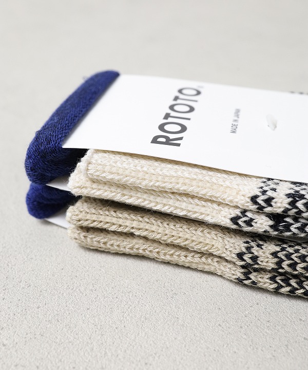 ROTOTO / ロトトROTOTOは上質で快適な履き心地にこだわった「一生愛せる消耗品」をコンセプトとしたメイドインジャパンの高品質ソックスブランドです。ROTOTOのソックスは国内一の生産量を誇るソックス産地 奈良県・広陵町を中心とした工場で生産しています。ROTOTOの履き心地にこだわったソックス作りはまず協力して下さる工場の職人の方々と話し合うことから始まります。イメージを具現化するため工場で直接職人の方と編み機や糸の相談しながら、何度も細かな調整を経てひとつのソックスを作り上げていきます。国内でも台数の限られた珍しい特殊編み機や昔ながらのコンピュータ化されていない旧式の編み機、また最新のハイテク編み機など様々な編み機を使い分け、シーンに応じて快適な履き心地を追求します。
