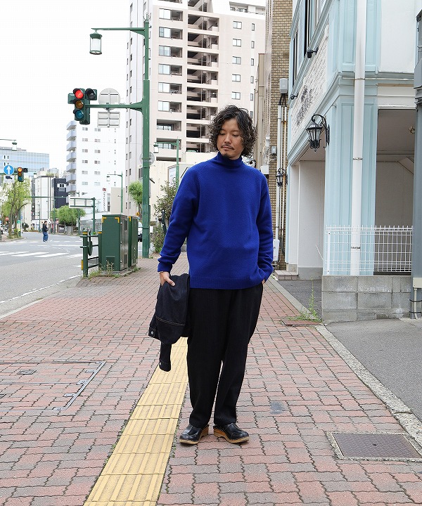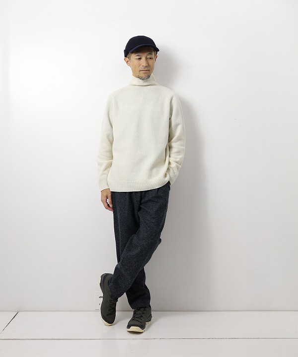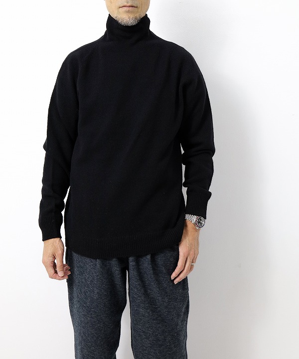 ウール100%で暖かく、ゆるめのタートルデザインがポイントになります。