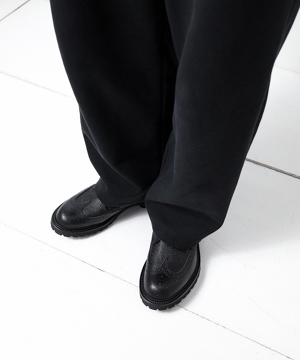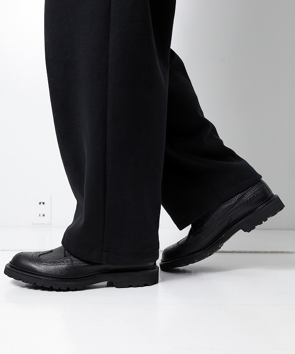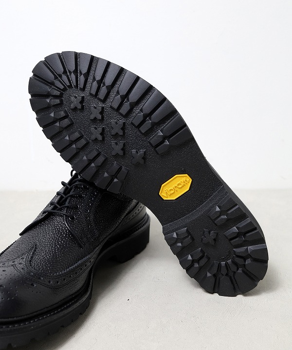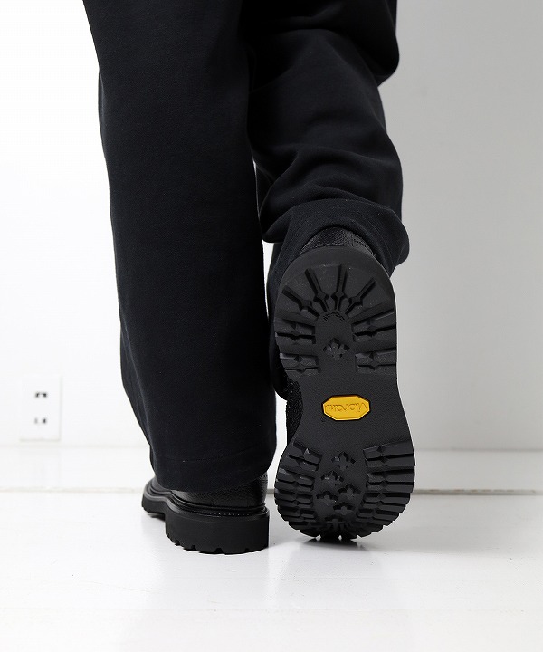 アッパーには、⽇本の山陽レザーを使用し、ブラックエンボス加工を施したタフなデザイン。