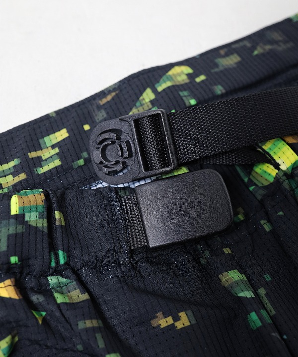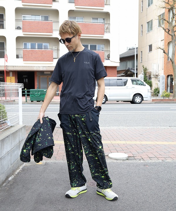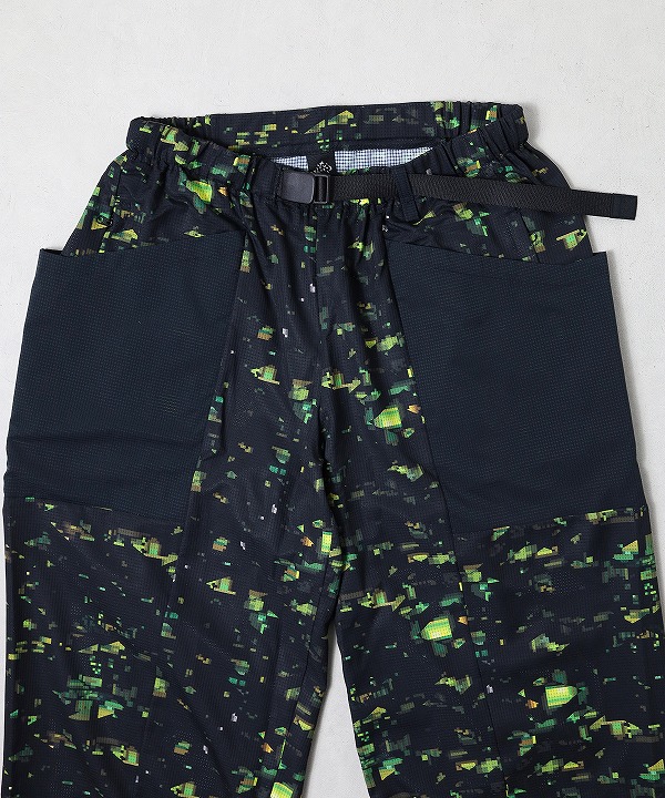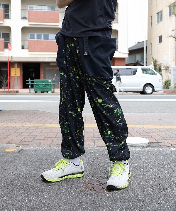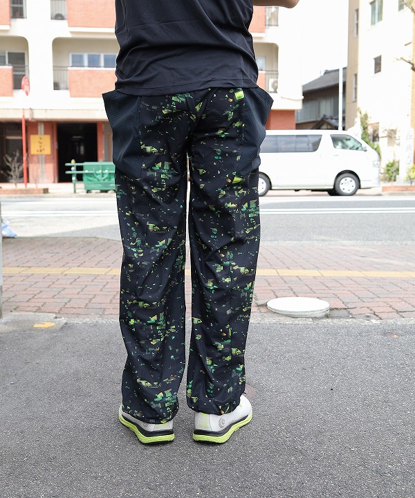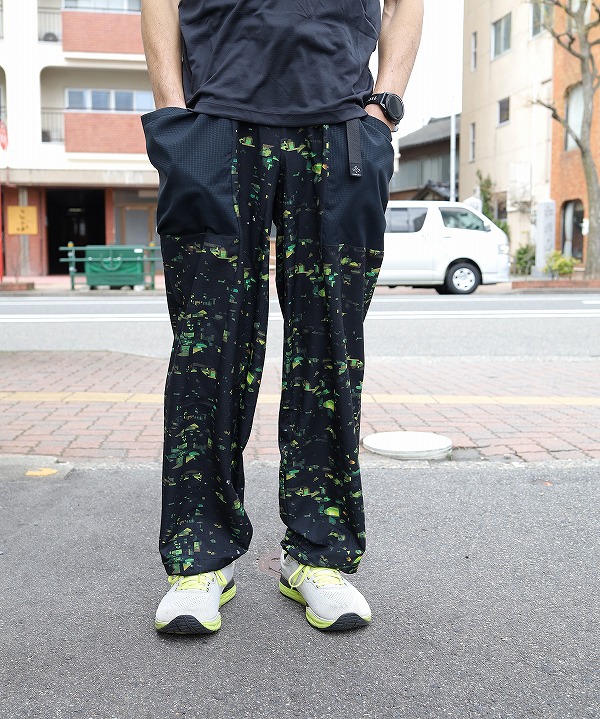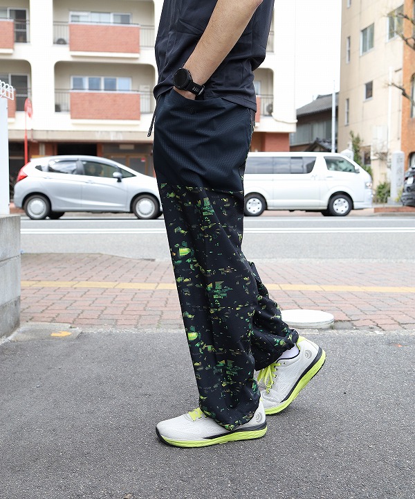 ブランドの世界観を一新する、ストリート感溢れるグラフィック〈NIGHT CAMO〉を全面に昇華プリントした軽量ワイドパンツ。