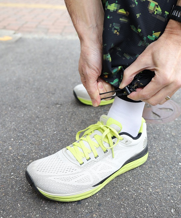 ランニングパンツでは珍しい、アパレルライクにストンと落ちるワイドシルエットを実現し、裾のドローコードでシルエット調整も可能です。
