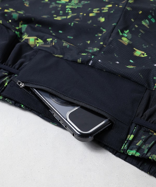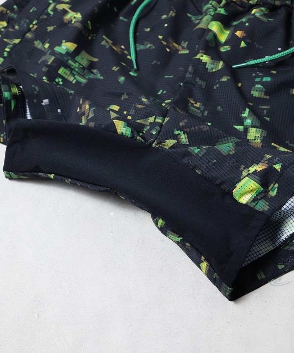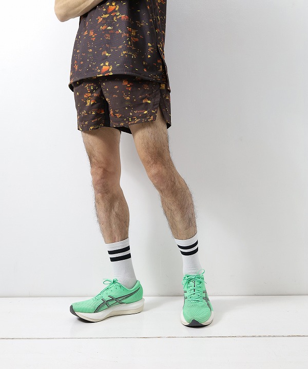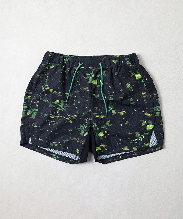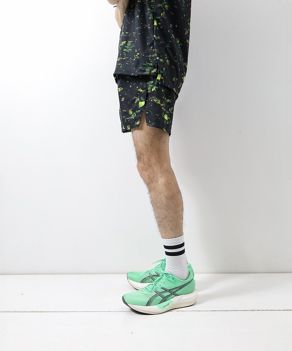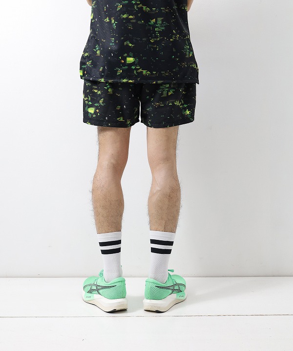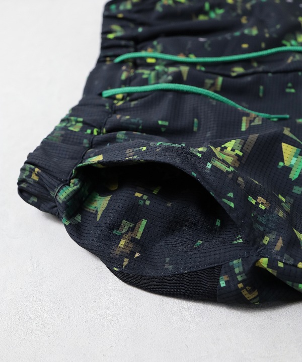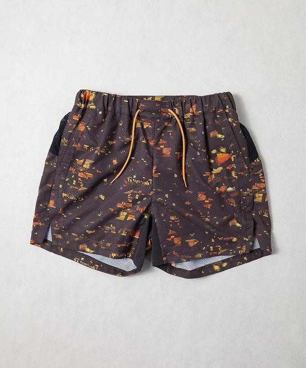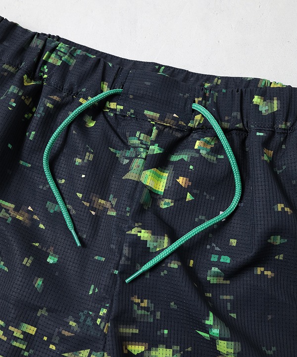 ブランドの世界観を一新する、ストリート感溢れるグラフィック〈NIGHT CAMO〉を全面に昇華プリントしたランニングショーツ。