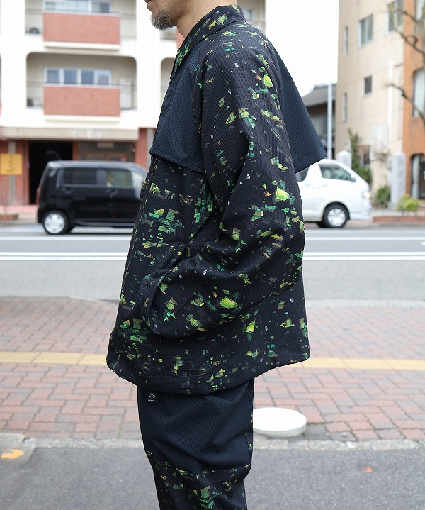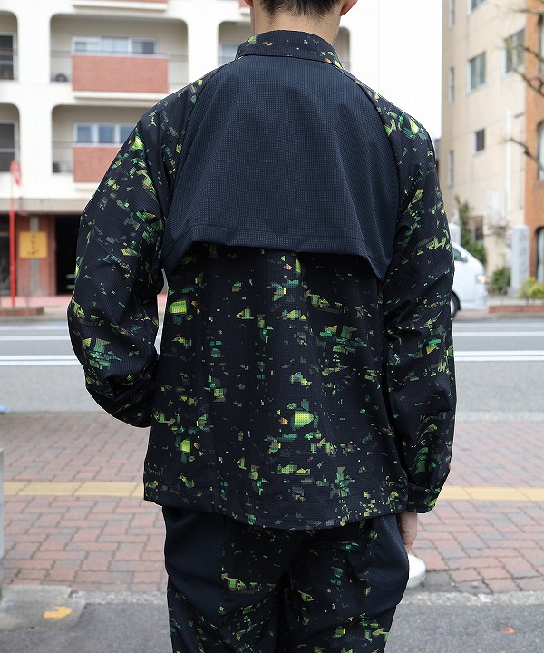 ブランドの世界観を一新する、ストリート感溢れるグラフィック〈NIGHT CAMO〉を全面に昇華プリントした軽量ジャケット。