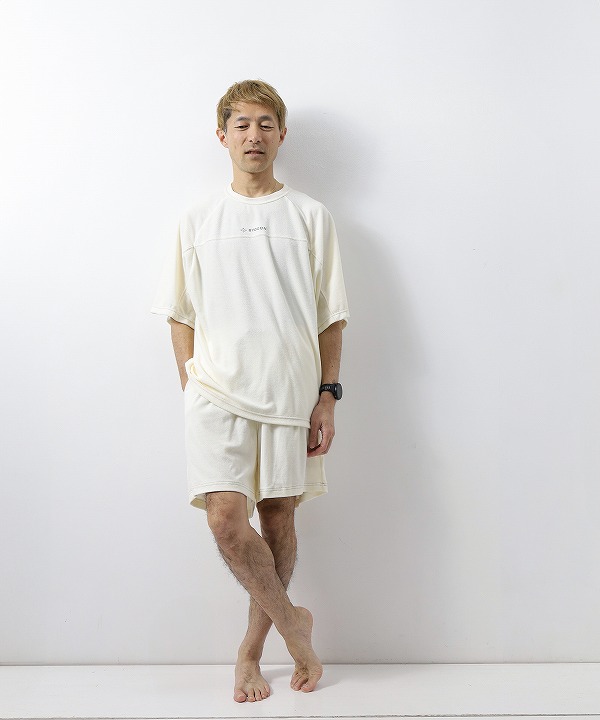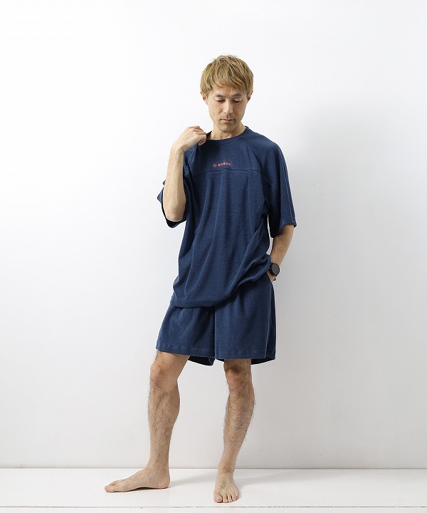 吸水速乾性に優れたパイル地を採用した、リカバリーウェアのセットアップ。