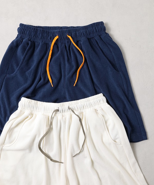 ゆったりとしたRYOGENらしいシルエットに、ウエスト紐とステッチの同色デザインを施し、リラックスアイテムながらも統一感ある上品な佇まいに。
