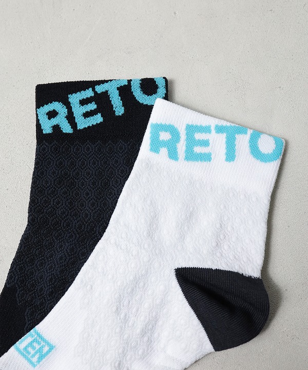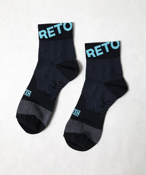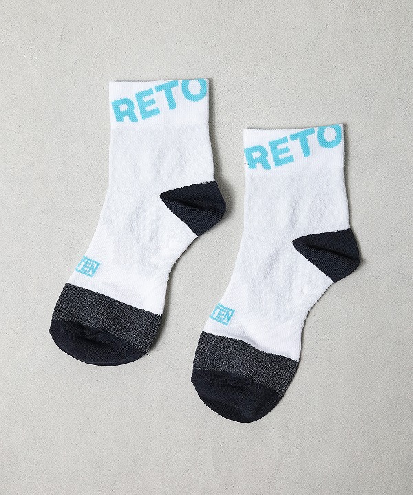 RETOプロダクトの代名詞となっている、IDATEN別注のコンプレッションミッドカットソックス。神野大地こだわりの”鍛えられた脚がカッコよく見える”エリートランナーが好むくるぶし丈は、かかとの靴擦れを防止しつつ、吸汗による重みも最低限に抑えます。ブランドロゴが大きく入った、可愛さも光るソックスです。