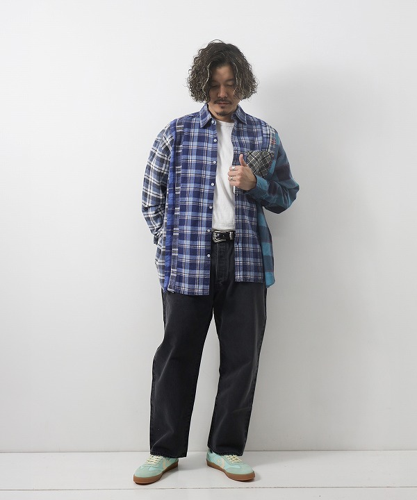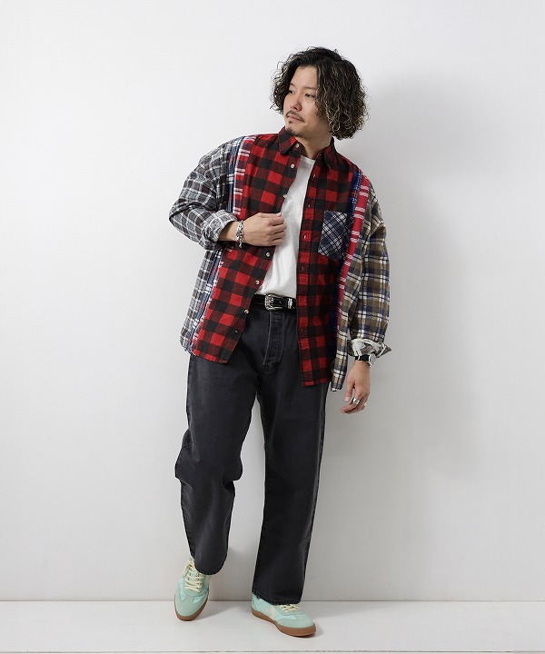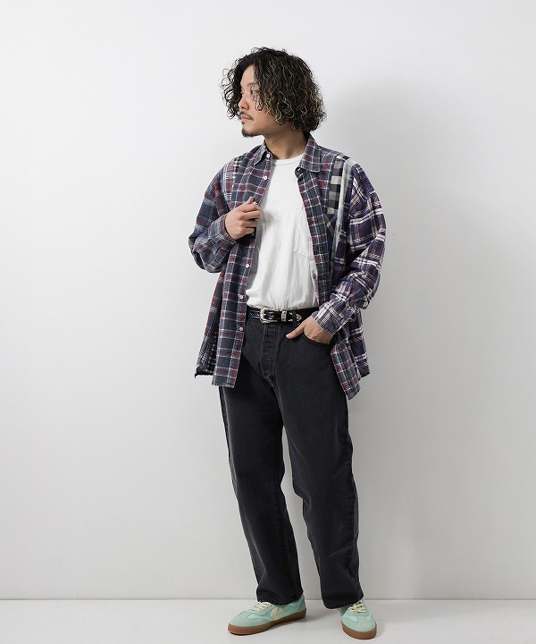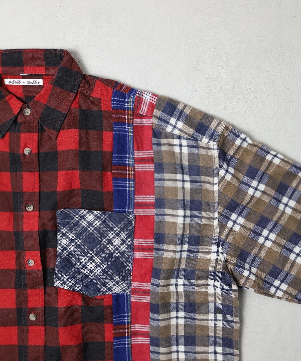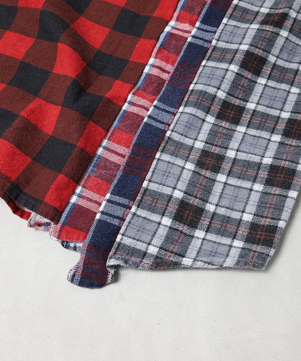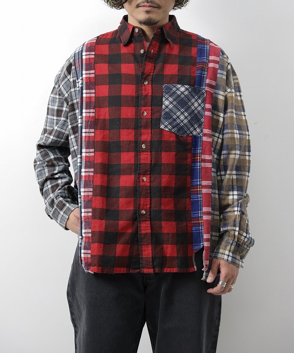 解体した7枚のネルシャツを1枚再構築したFlannel Shirt。