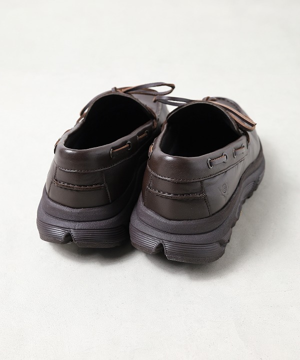 上品なレザーシューズの佇まいとスニーカーの機能性を融合した本作は、タウンユースからアウトドアまで幅広く活躍する特別な一足です。ブラウンとブラックの2色展開。