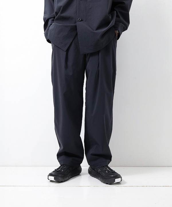 ワイドテーパードモデルのWallet Pant RESORTです。 深めの1タックが入りボリューム感がありながら、裾に向かいテーパードを効かせることで上品なリラックス感を持つモデル。