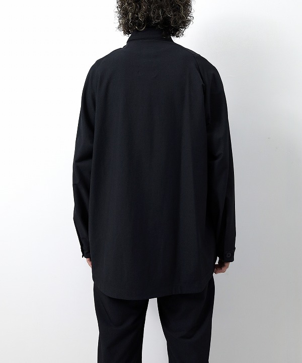 小ぶりの襟に短めのカフス、オーバーサイズシルエット、 計算されたバランス感や仕様ながらステッチを表に出さずポケットを排除するなど極めてミニマルな佇まいに仕上がりに。