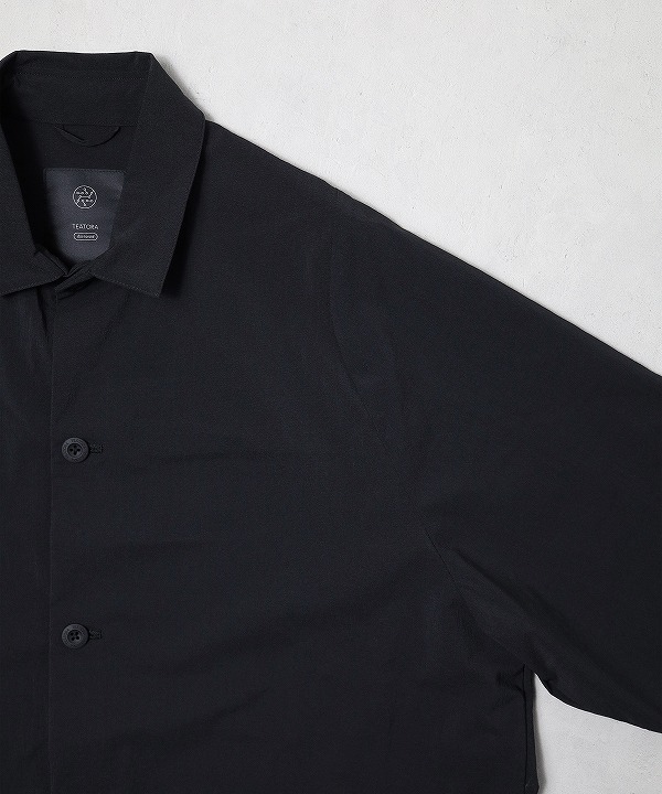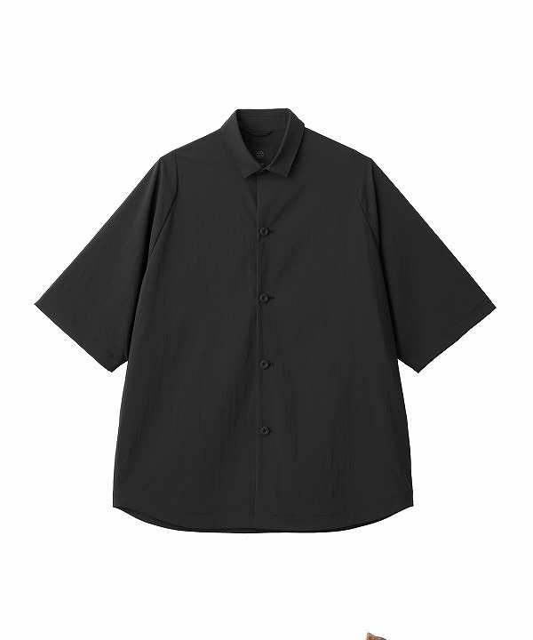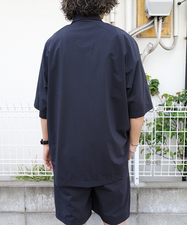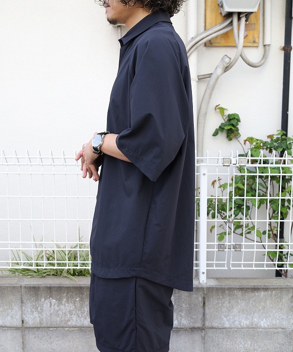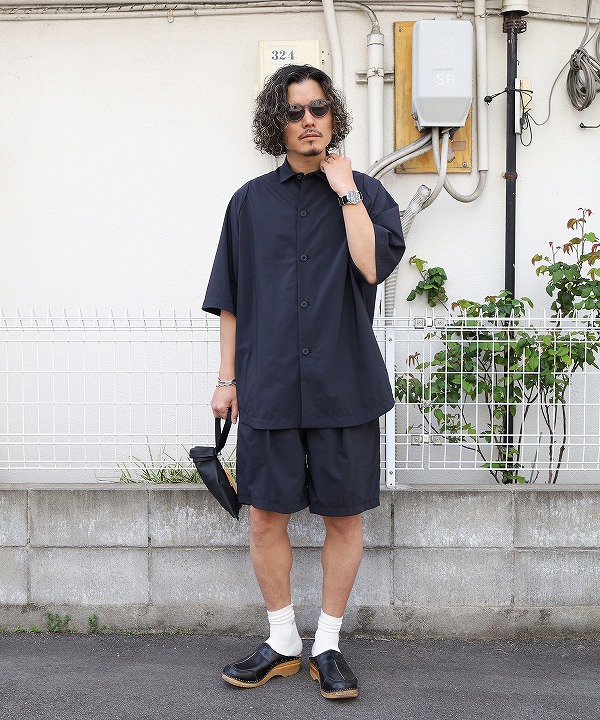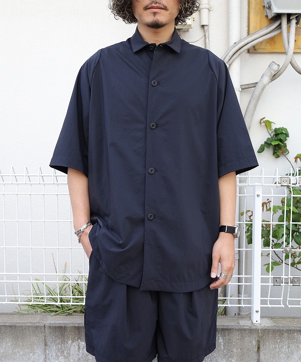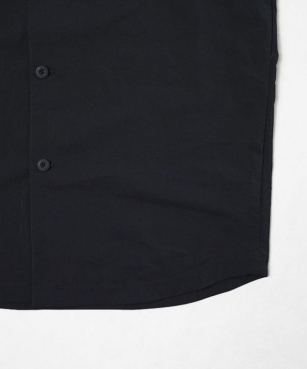 極めてミニマルな佇まいのシャツは少し大きめのラバーボタンを採用することでシャツジャケットのように着こなすこともできます。