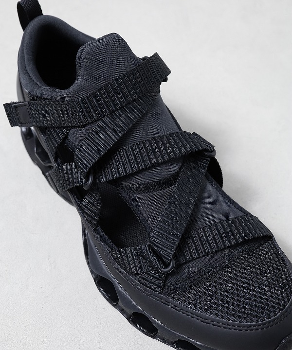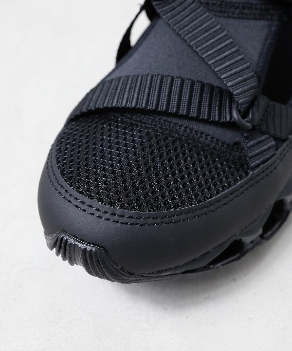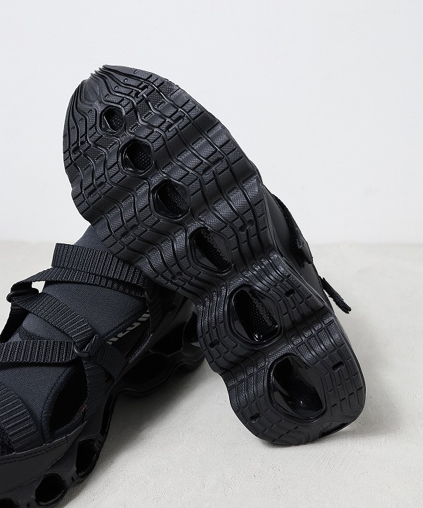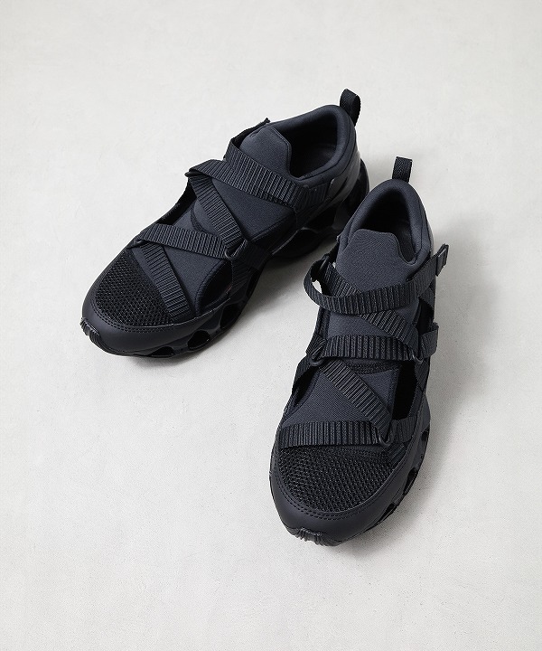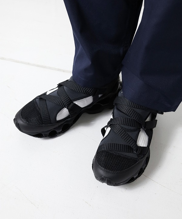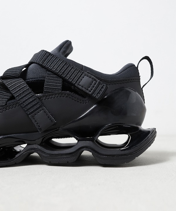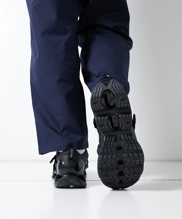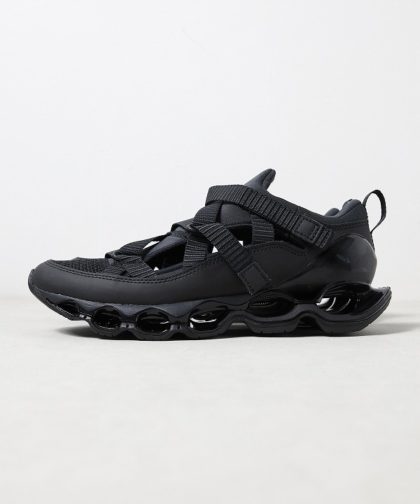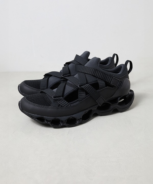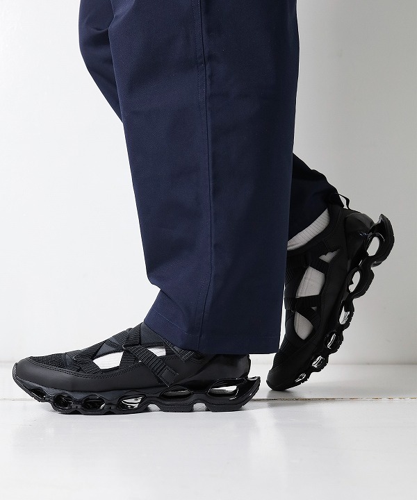 スプリントスパイクから着想を得たモデル「WAVE PROPHECY STRAP」はサンダル感覚で素足でも、スニーカー感覚でソックスと合わせても楽しめる汎用性の高い一足です。