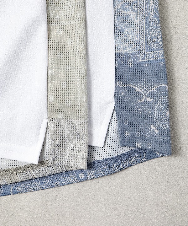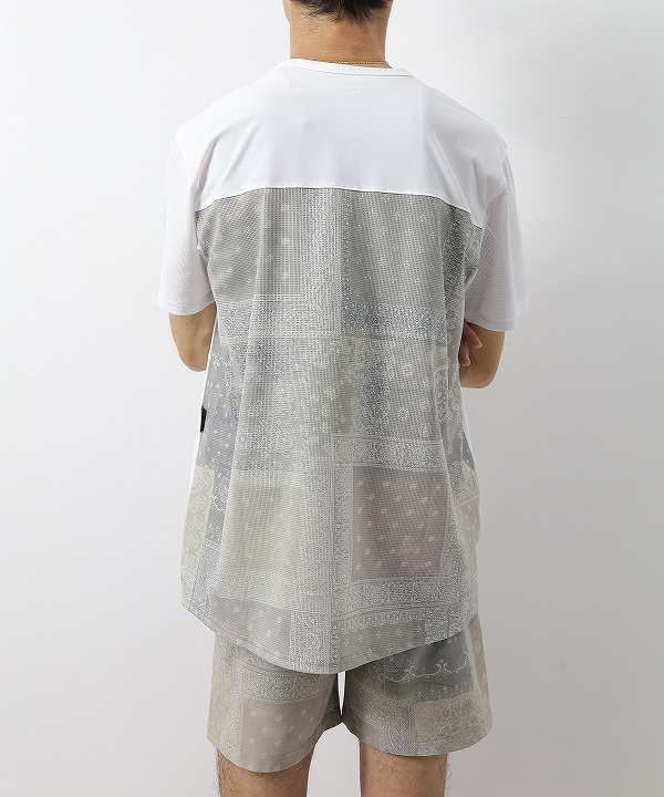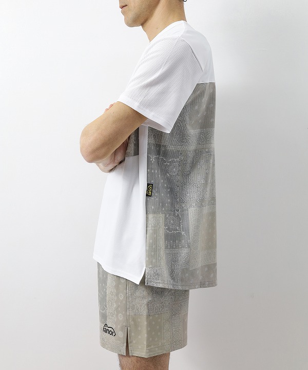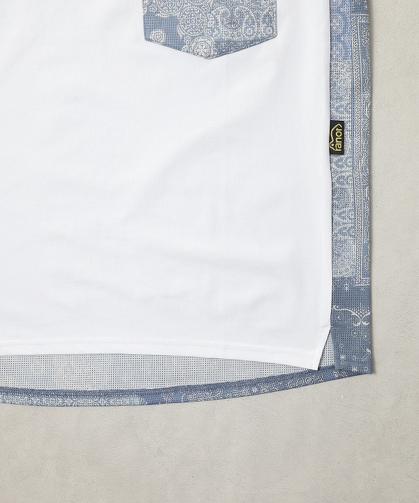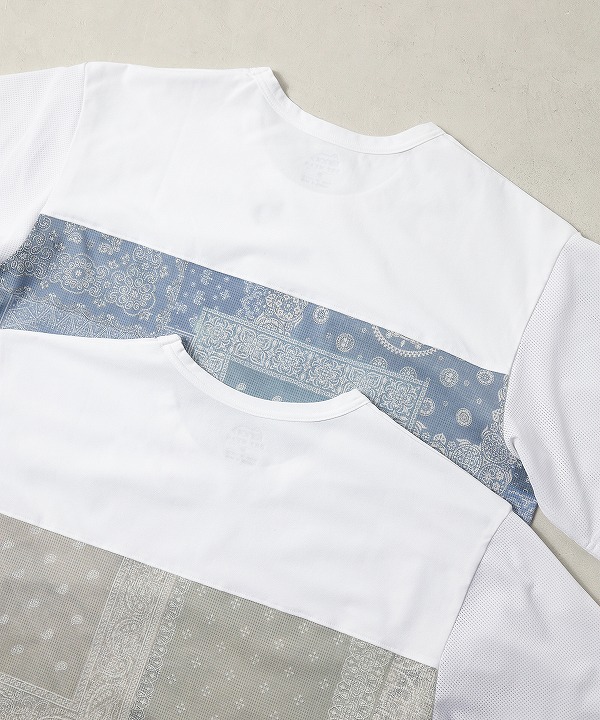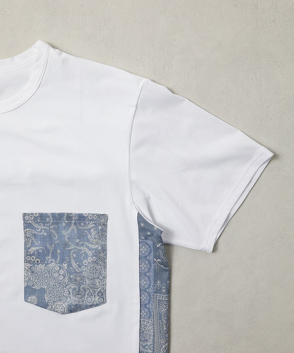機能性Tシャツ生地(ニット生地)を合わせた異素材の組み合わせバンダナTシャツです。