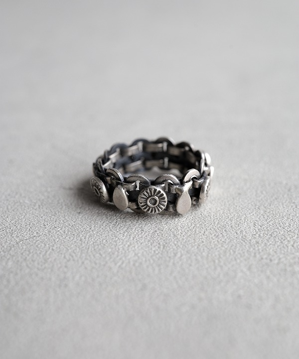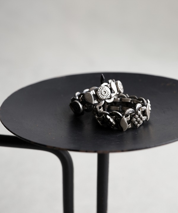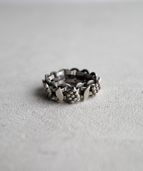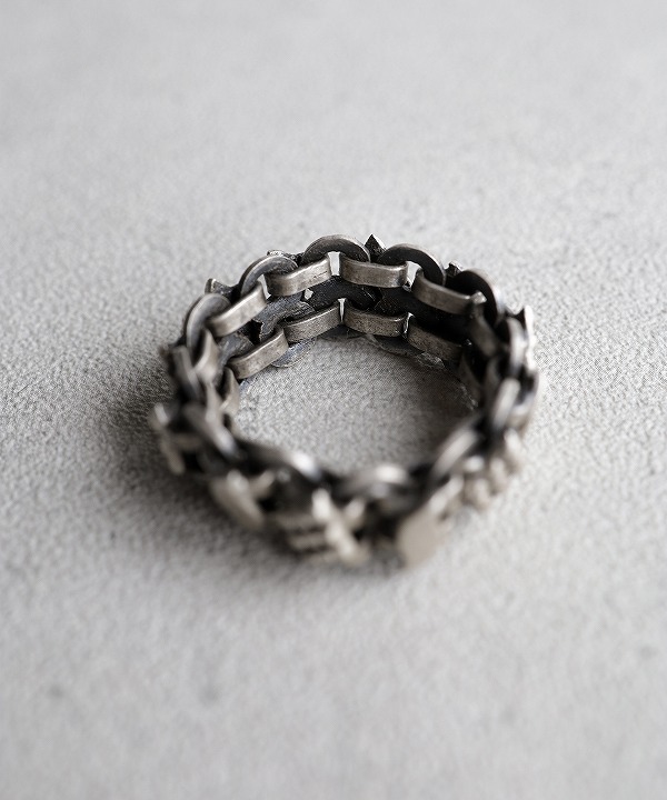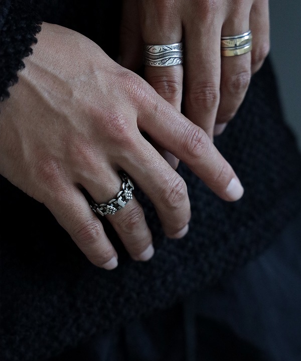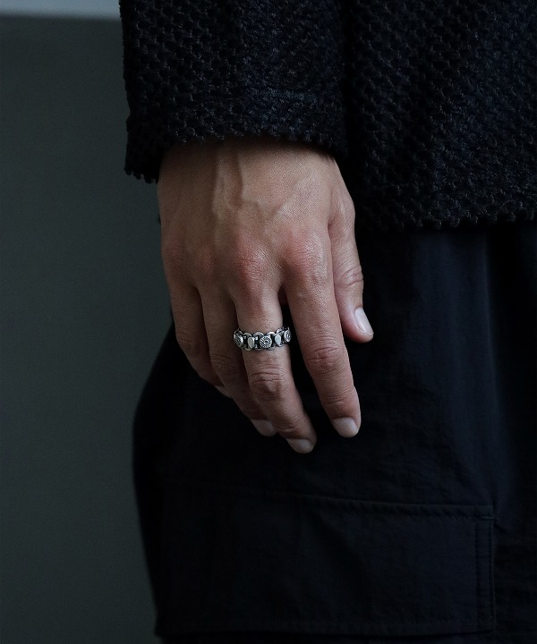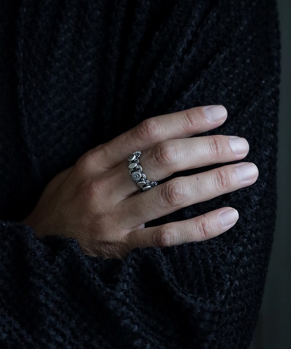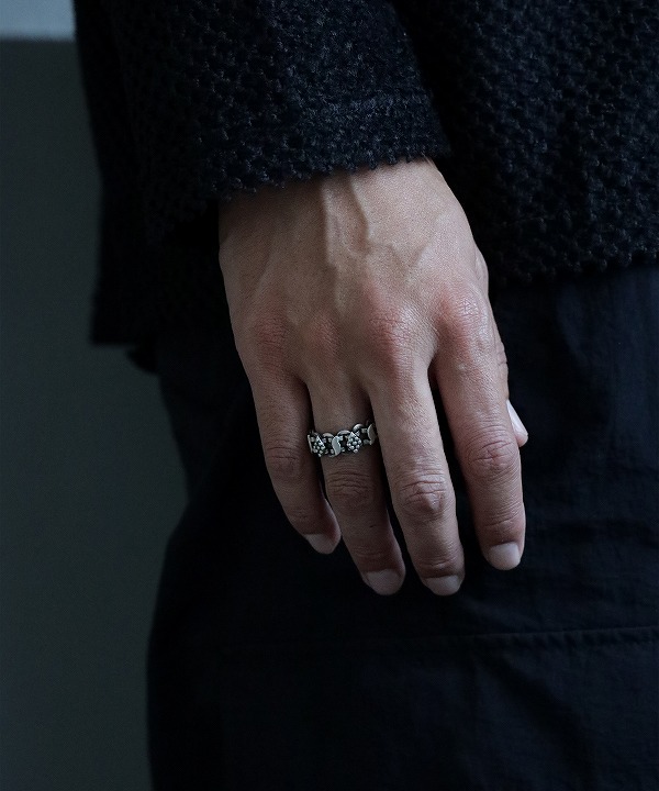 シルバー925素材を使用し、手作りで一点一点丁寧に制作されたリング。他で見ることはない特徴的なデザインが独特な雰囲気をまとっていて、スタイリングを引き立ててくれます。